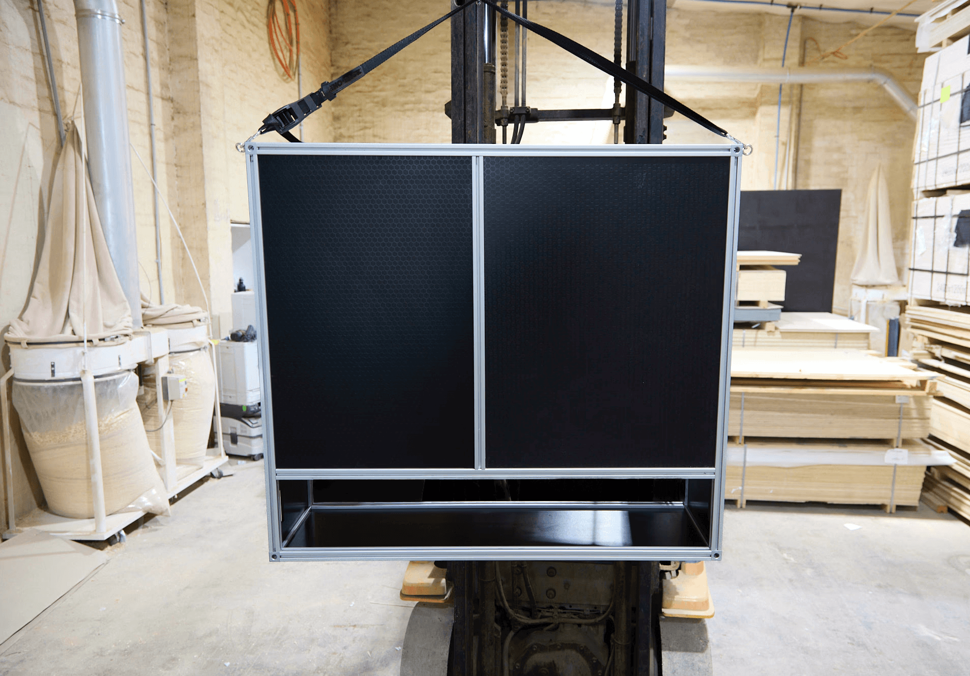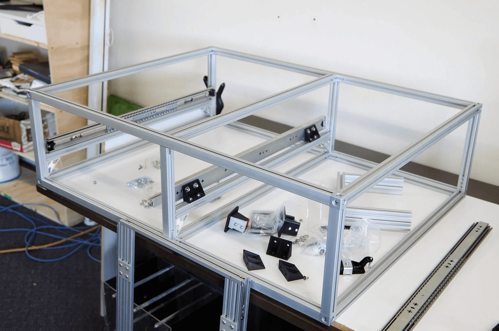 The core BootKamp modular exoskeleton weighs just 18 kg — about the same as a medium-sized dog or a checked luggage bag. Full drawer system including kitchen units weigh 38kg - around 50% less than traditional drawer systems.